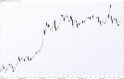 Fortescue is up 20 at 661. I'm sitting with my long position for now and targetting the top of the November/December range of around 690. I've also punted a few Feb 700 calls at 5 in case it has the sort of reversal there's been in Mmx and Pdn. That's probably less likely since there are plenty of longs at 680 (I think) from the recent Temasek placement but I'm prepared to risk the option premium.